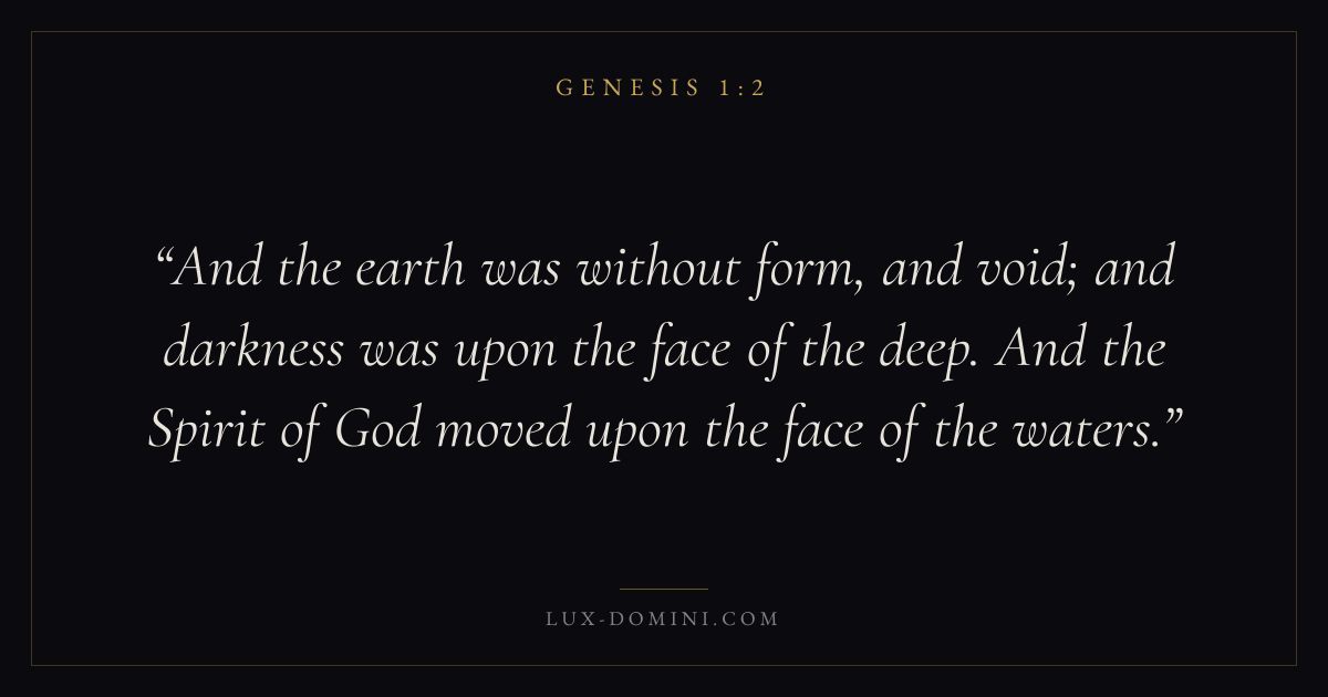And the earth was without form, and void; and darkness was upon the face of the deep. And the Spirit of God moved upon the face of the waters.