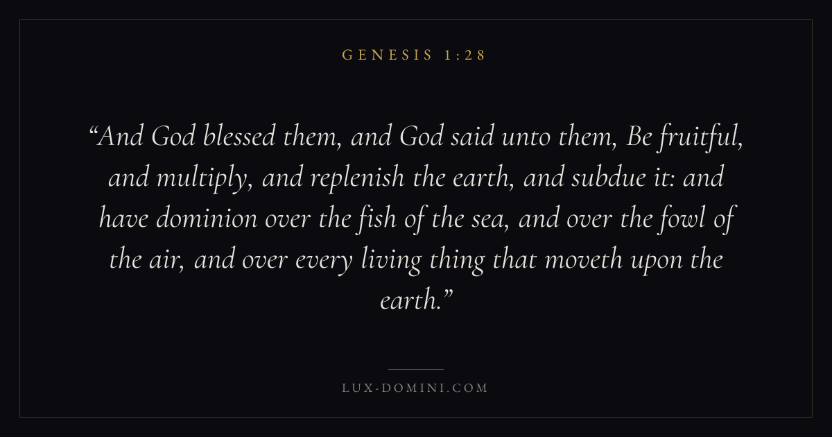 And God blessed them, and God said unto them, Be fruitful, and multiply, and replenish the earth, and subdue it: and have dominion over the fish of the sea, and over the fowl of the air, and over every living thing that moveth upon the earth.