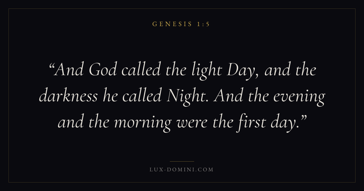 And God called the light Day, and the darkness he called Night. And the evening and the morning were the first day.