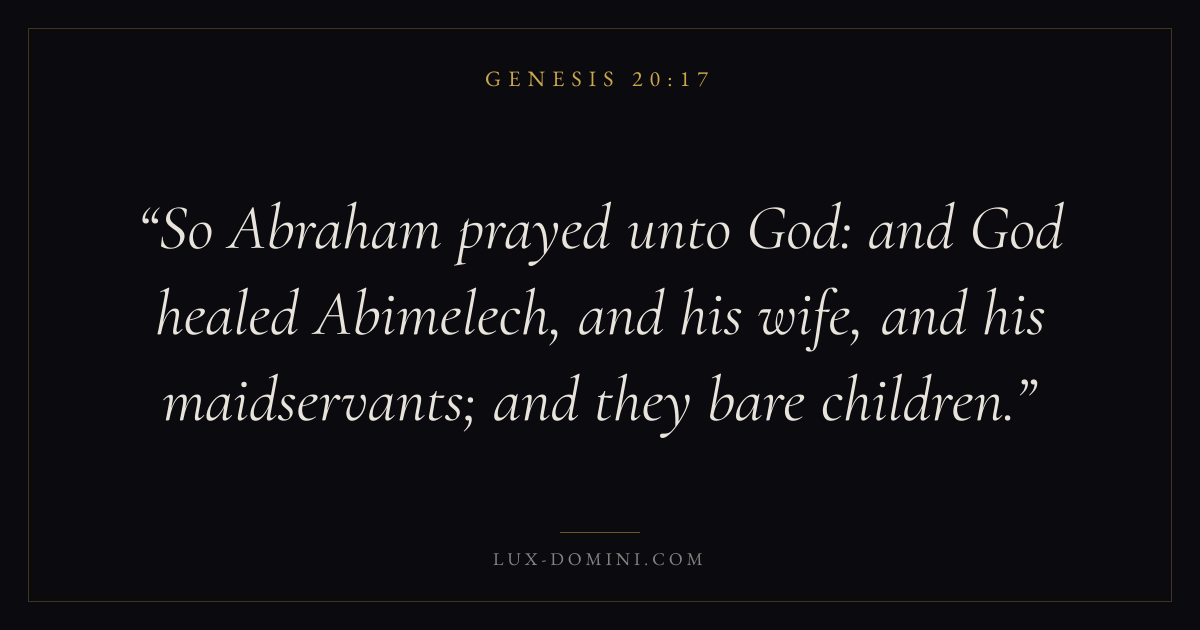 So Abraham prayed unto God: and God healed Abimelech, and his wife, and his maidservants; and they bare children.