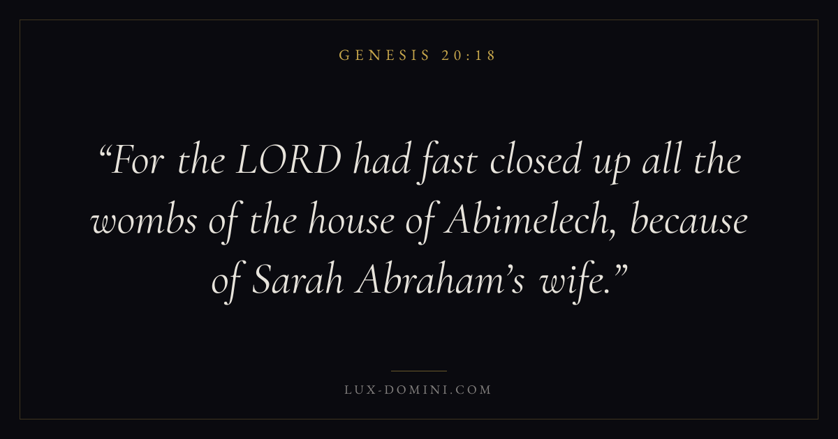 For the LORD had fast closed up all the wombs of the house of Abimelech, because of Sarah Abraham’s wife.