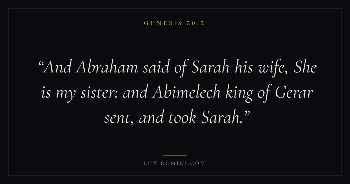 And Abraham said of Sarah his wife, She is my sister: and Abimelech king of Gerar sent, and took Sarah.