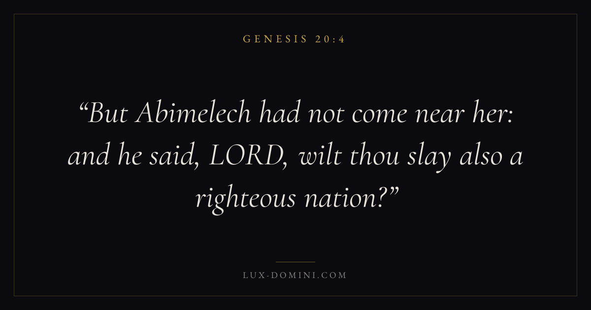 But Abimelech had not come near her: and he said, LORD, wilt thou slay also a righteous nation?