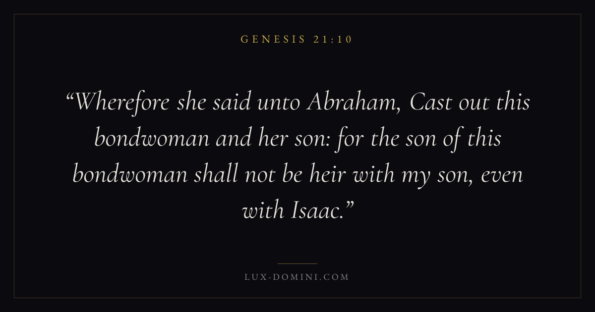 Wherefore she said unto Abraham, Cast out this bondwoman and her son: for the son of this bondwoman shall not be heir with my son, even with Isaac.
