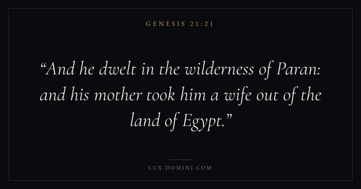 And he dwelt in the wilderness of Paran: and his mother took him a wife out of the land of Egypt.