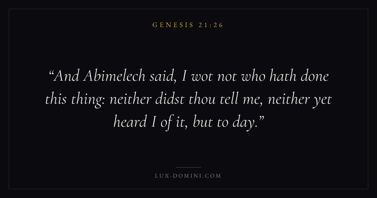 And Abimelech said, I wot not who hath done this thing: neither didst thou tell me, neither yet heard I of it, but to day.