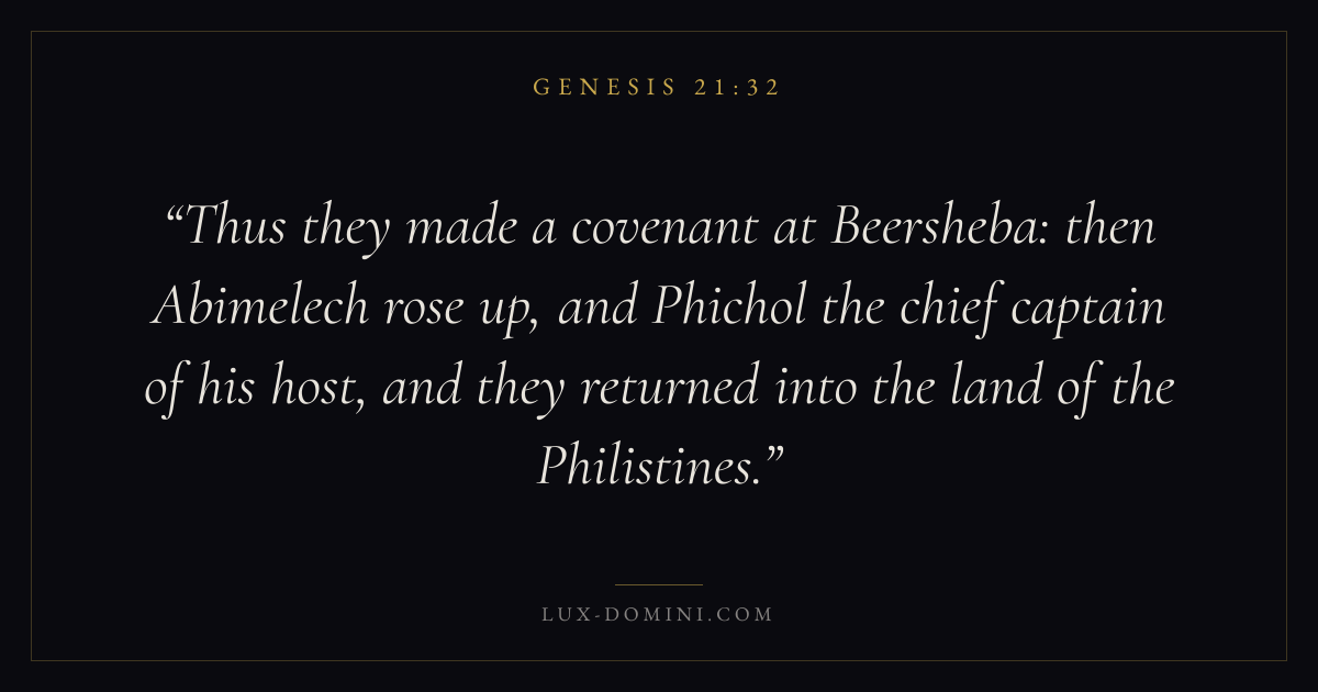 Thus they made a covenant at Beersheba: then Abimelech rose up, and Phichol the chief captain of his host, and they returned into the land of the Philistines.