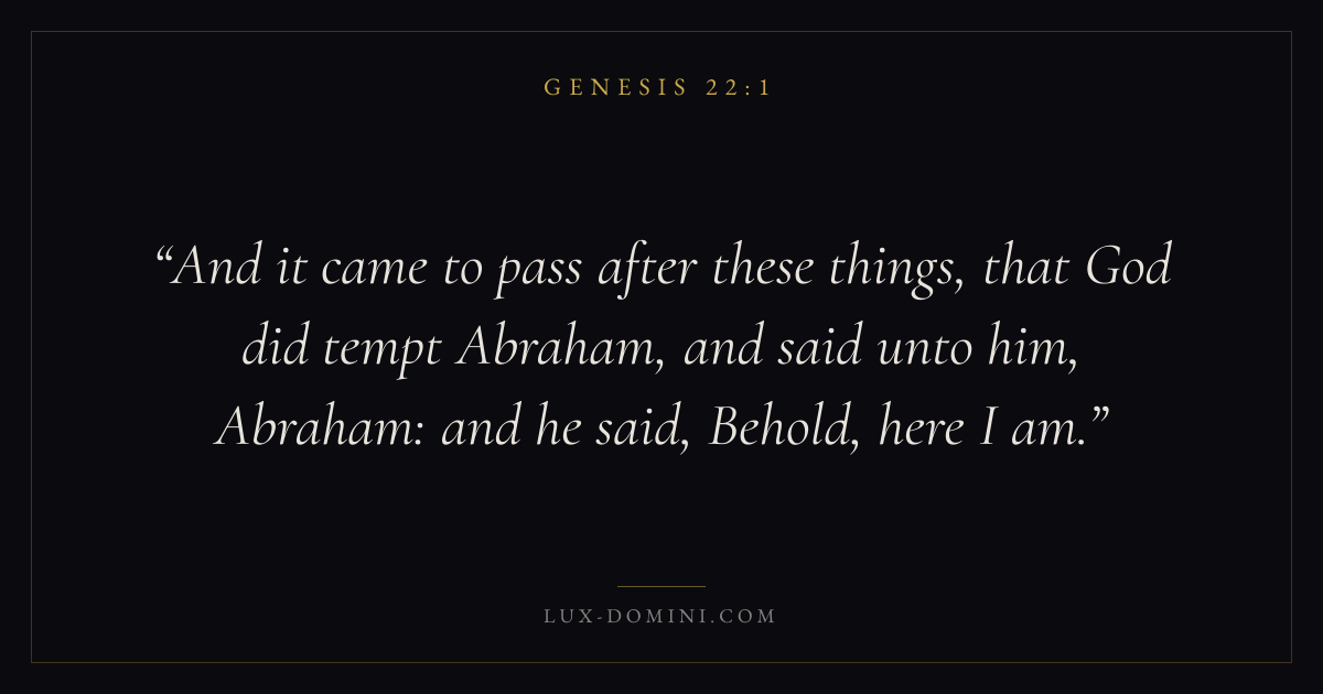 And it came to pass after these things, that God did tempt Abraham, and said unto him, Abraham: and he said, Behold, here I am.