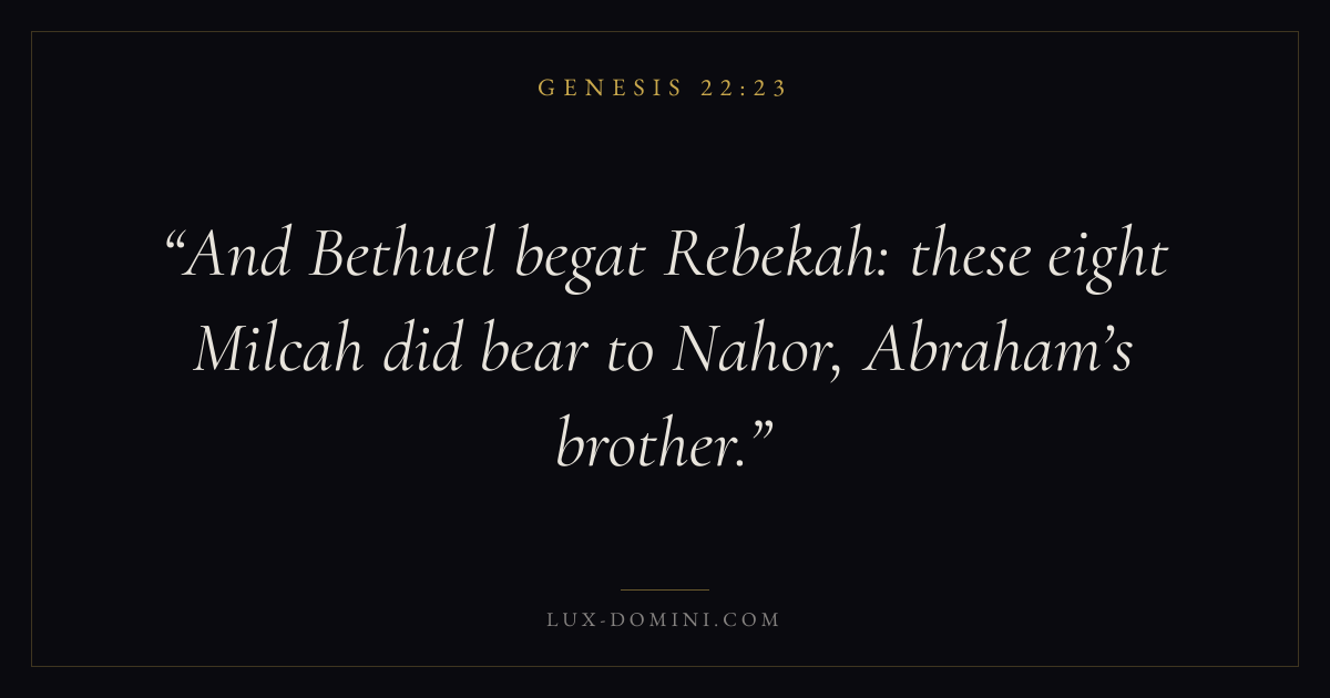 And Bethuel begat Rebekah: these eight Milcah did bear to Nahor, Abraham’s brother.