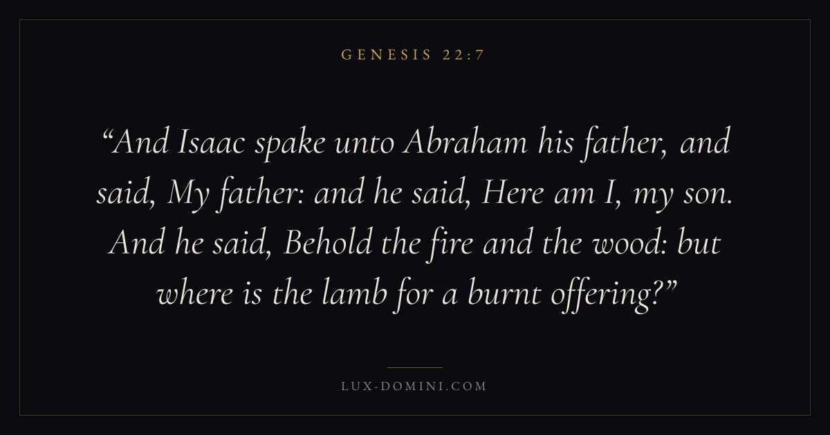 And Isaac spake unto Abraham his father, and said, My father: and he said, Here am I, my son. And he said, Behold the fire and the wood: but where is the lamb for a burnt offering?