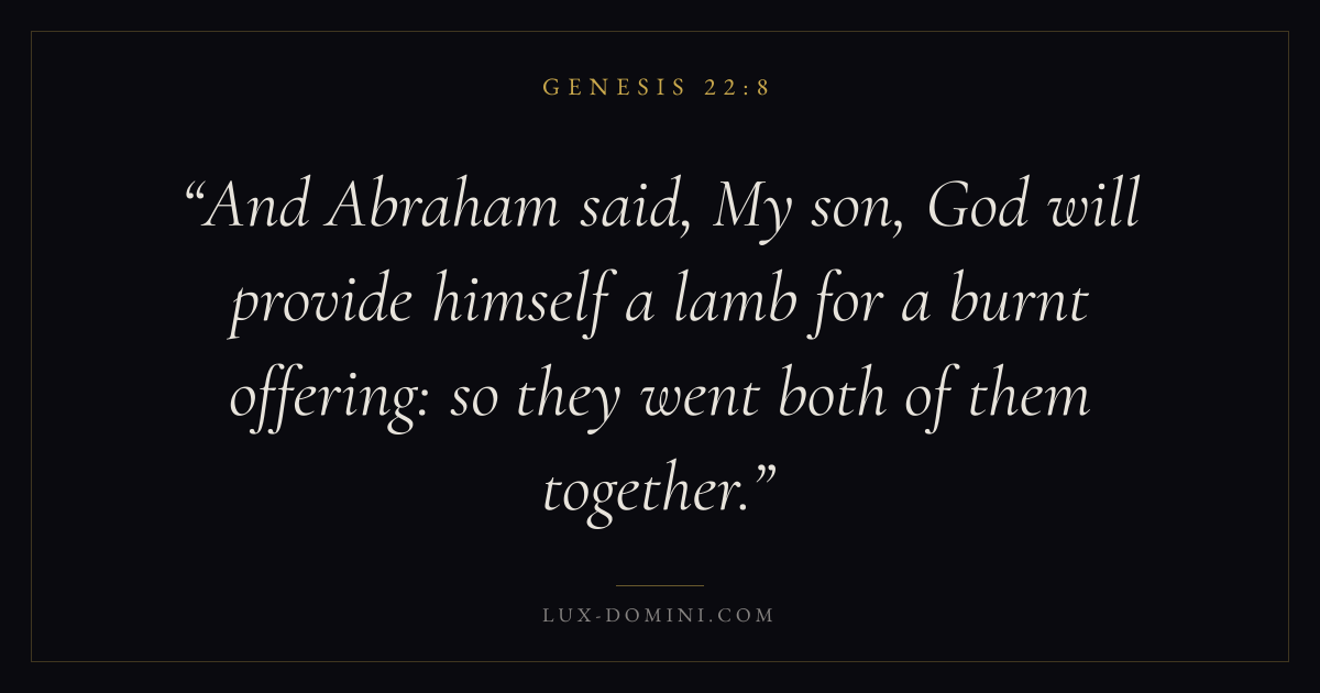 And Abraham said, My son, God will provide himself a lamb for a burnt offering: so they went both of them together.