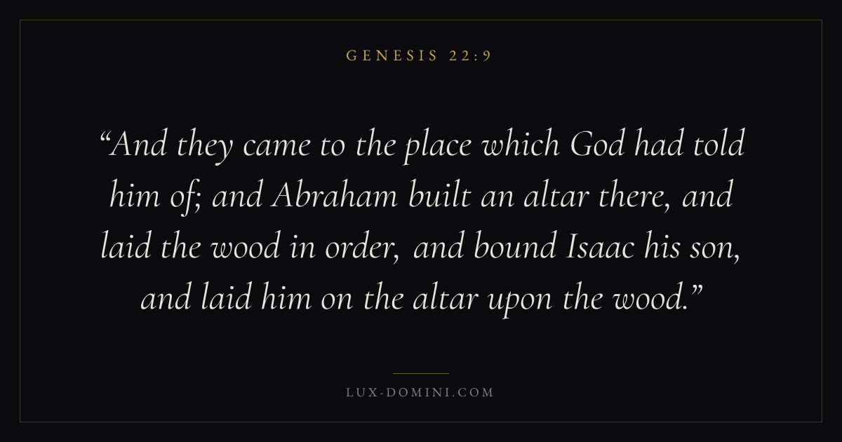And they came to the place which God had told him of; and Abraham built an altar there, and laid the wood in order, and bound Isaac his son, and laid him on the altar upon the wood.