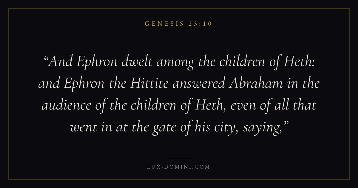 And Ephron dwelt among the children of Heth: and Ephron the Hittite answered Abraham in the audience of the children of Heth, even of all that went in at the gate of his city, saying,