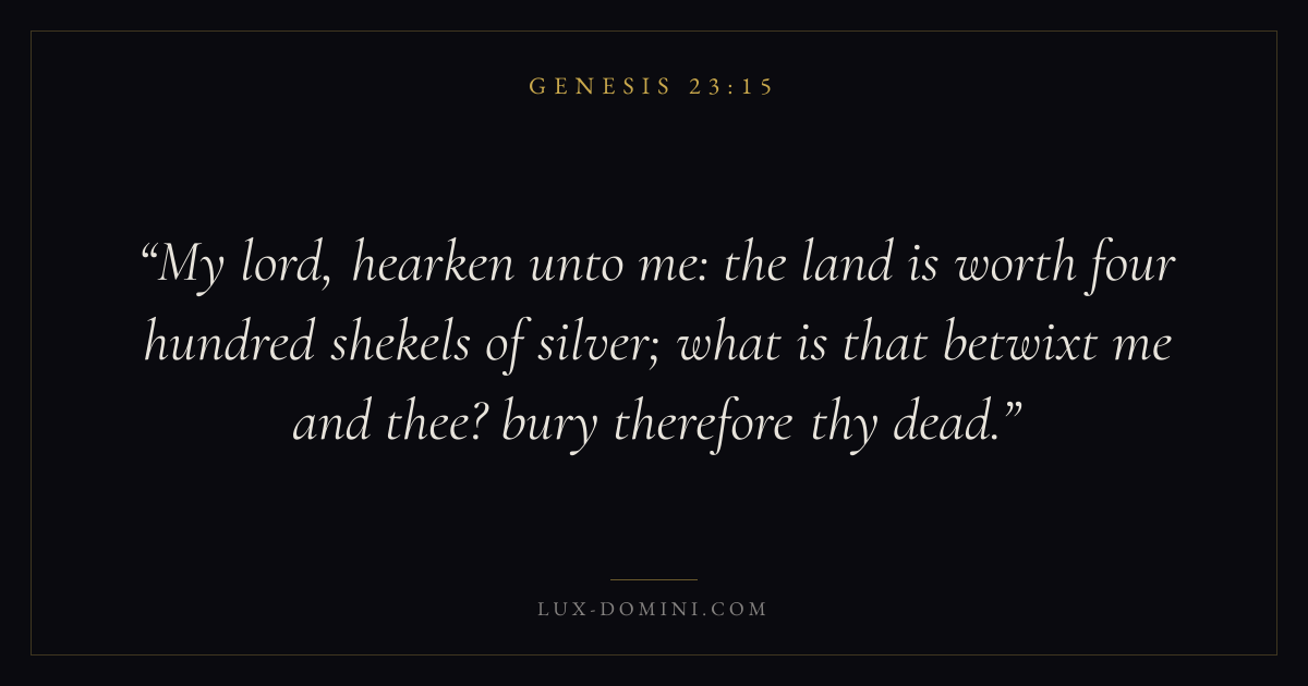 My lord, hearken unto me: the land is worth four hundred shekels of silver; what is that betwixt me and thee? bury therefore thy dead.
