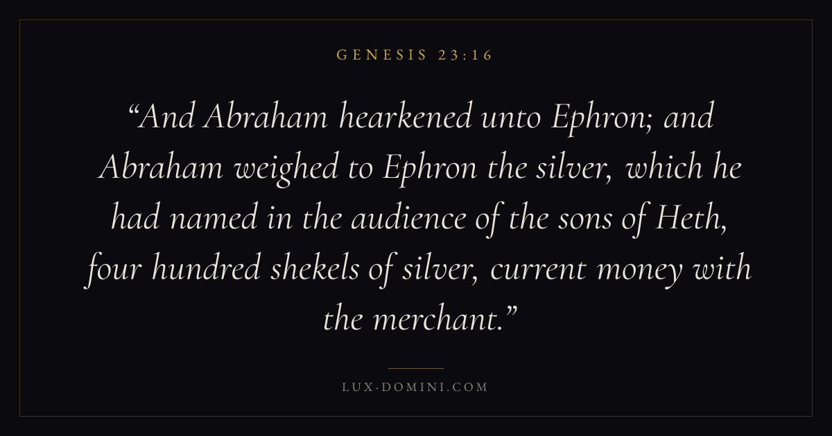 And Abraham hearkened unto Ephron; and Abraham weighed to Ephron the silver, which he had named in the audience of the sons of Heth, four hundred shekels of silver, current money with the merchant.