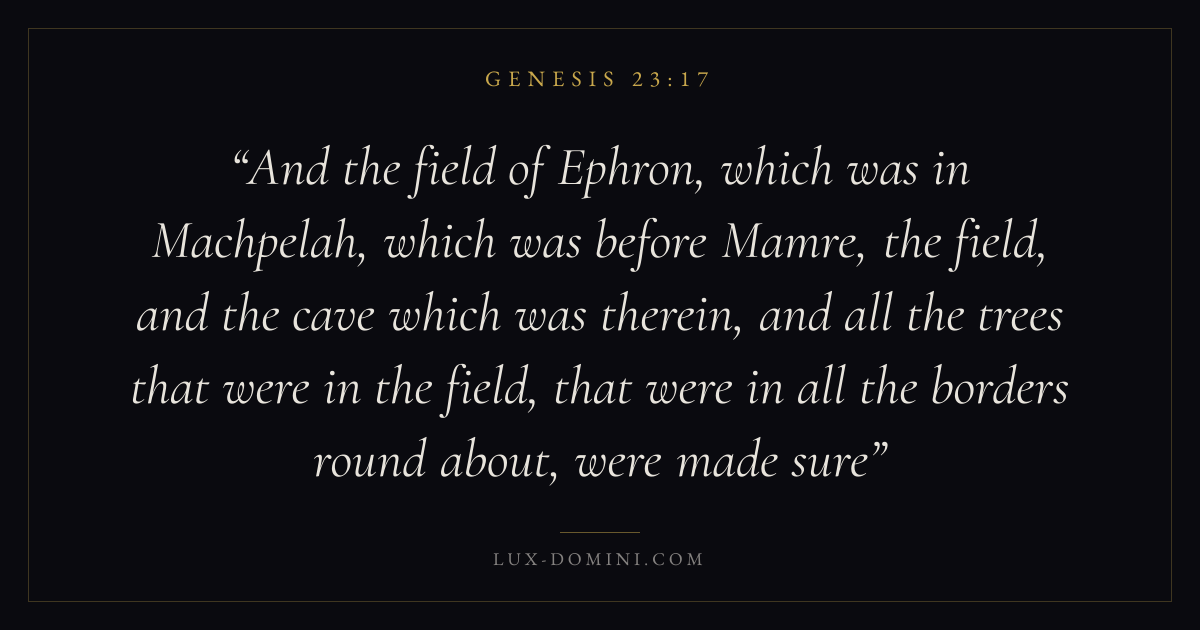 And the field of Ephron, which was in Machpelah, which was before Mamre, the field, and the cave which was therein, and all the trees that were in the field, that were in all the borders round about, were made sure