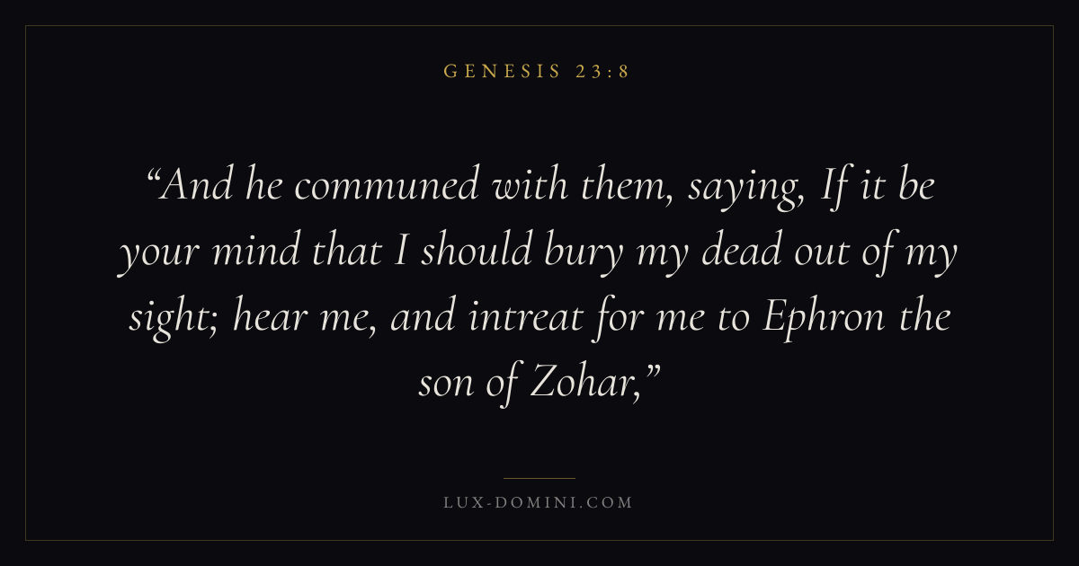 And he communed with them, saying, If it be your mind that I should bury my dead out of my sight; hear me, and intreat for me to Ephron the son of Zohar,