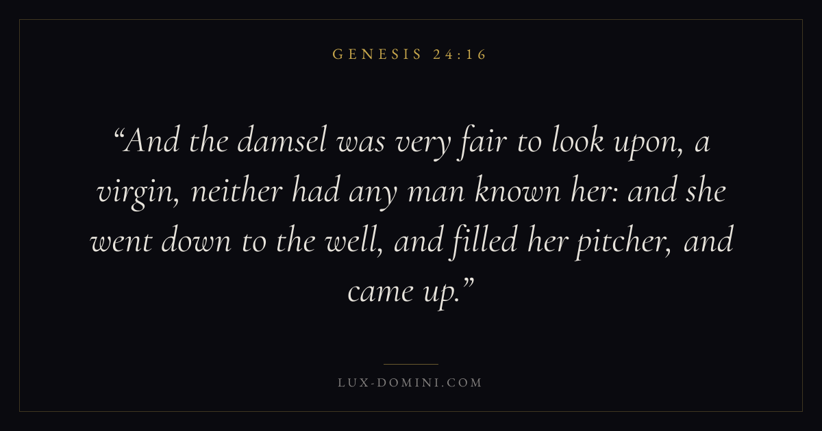 And the damsel was very fair to look upon, a virgin, neither had any man known her: and she went down to the well, and filled her pitcher, and came up.