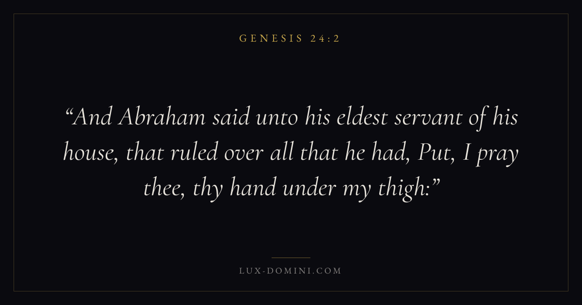 And Abraham said unto his eldest servant of his house, that ruled over all that he had, Put, I pray thee, thy hand under my thigh: