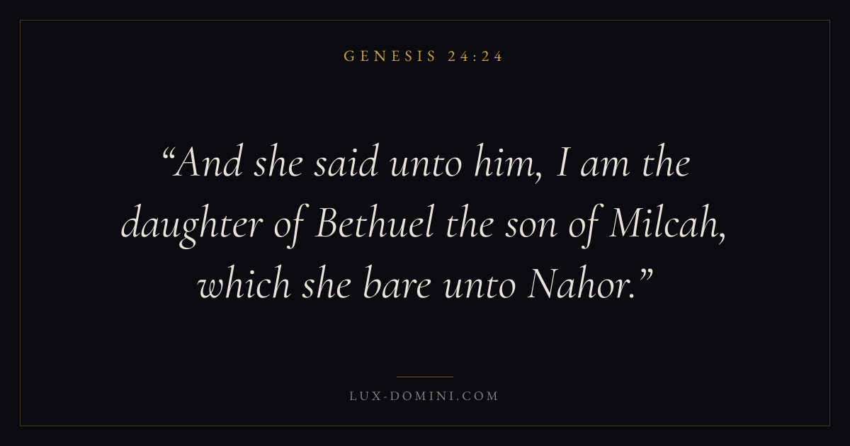 And she said unto him, I am the daughter of Bethuel the son of Milcah, which she bare unto Nahor.