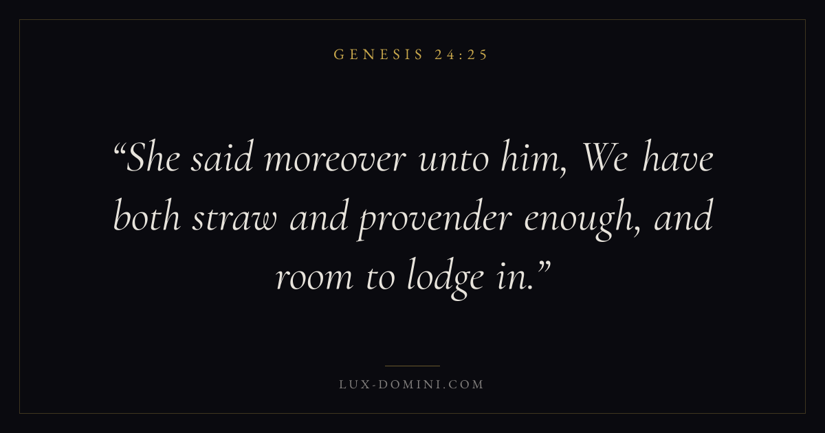She said moreover unto him, We have both straw and provender enough, and room to lodge in.