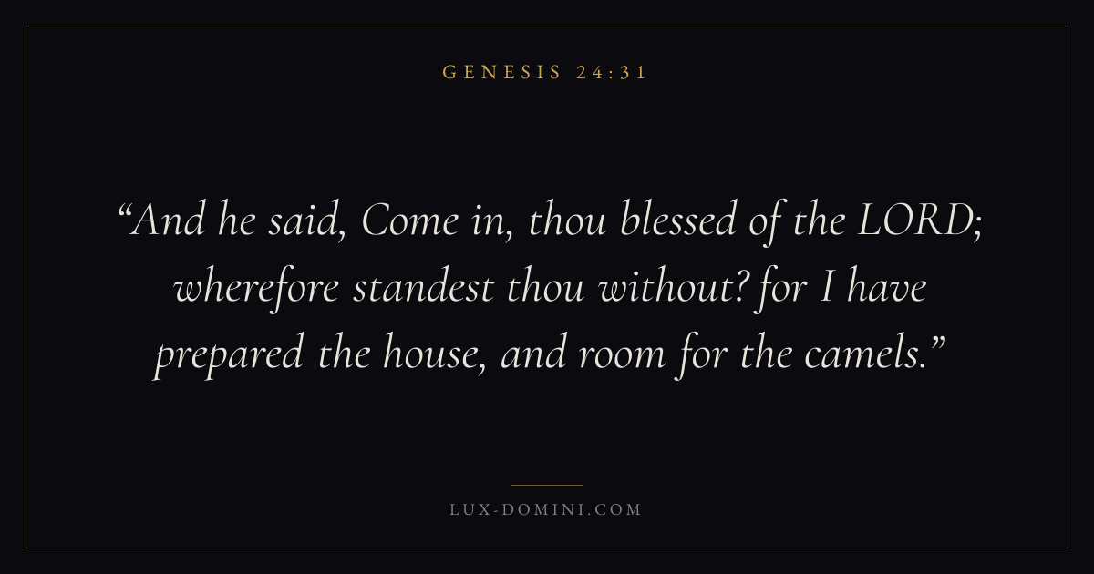 And he said, Come in, thou blessed of the LORD; wherefore standest thou without? for I have prepared the house, and room for the camels.
