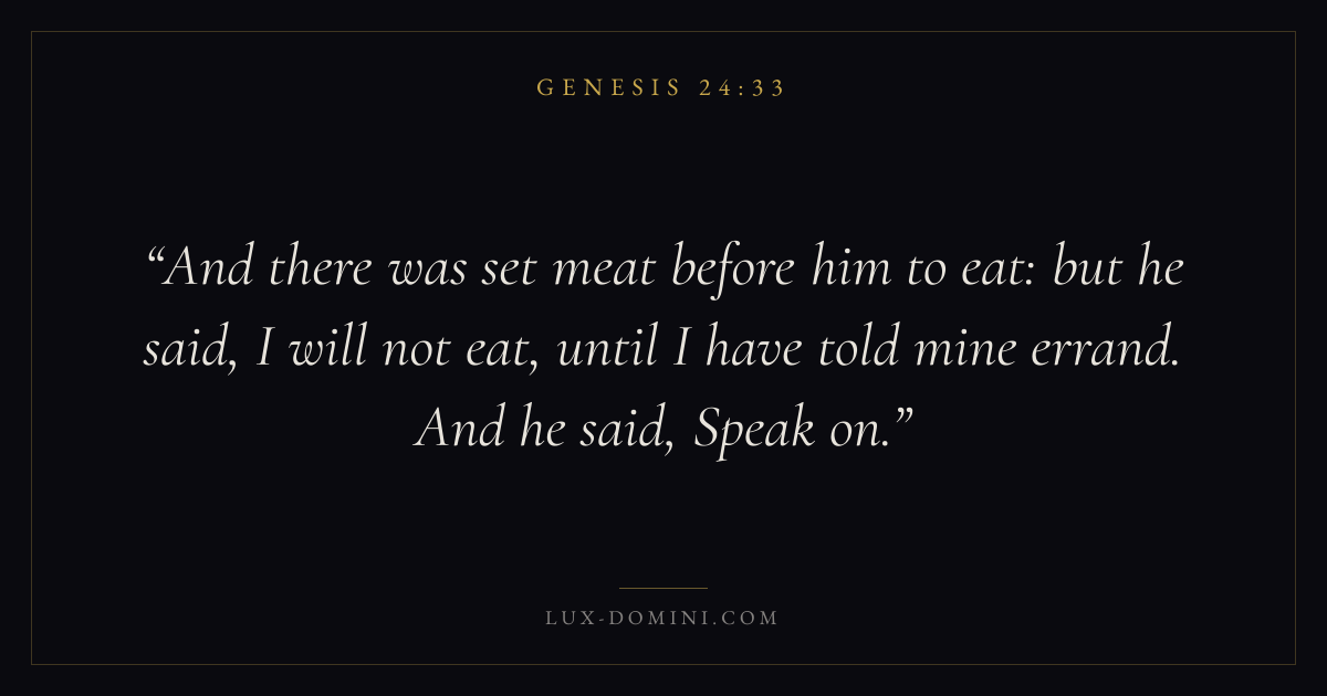And there was set meat before him to eat: but he said, I will not eat, until I have told mine errand. And he said, Speak on.