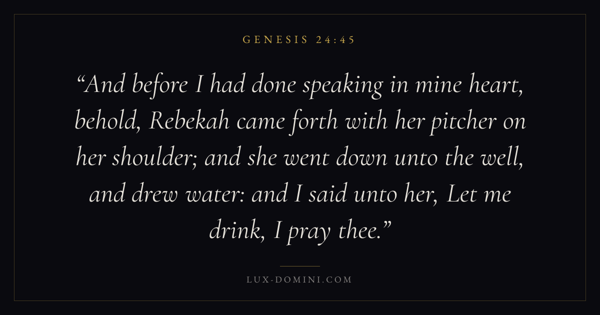 And before I had done speaking in mine heart, behold, Rebekah came forth with her pitcher on her shoulder; and she went down unto the well, and drew water: and I said unto her, Let me drink, I pray thee.