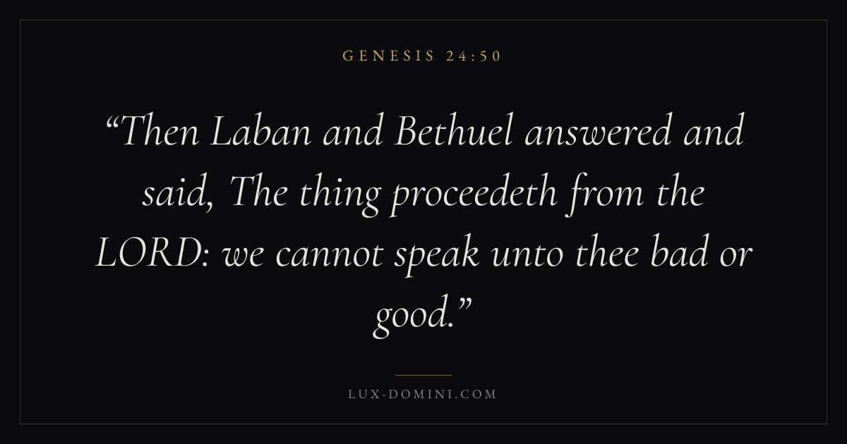 Then Laban and Bethuel answered and said, The thing proceedeth from the LORD: we cannot speak unto thee bad or good.