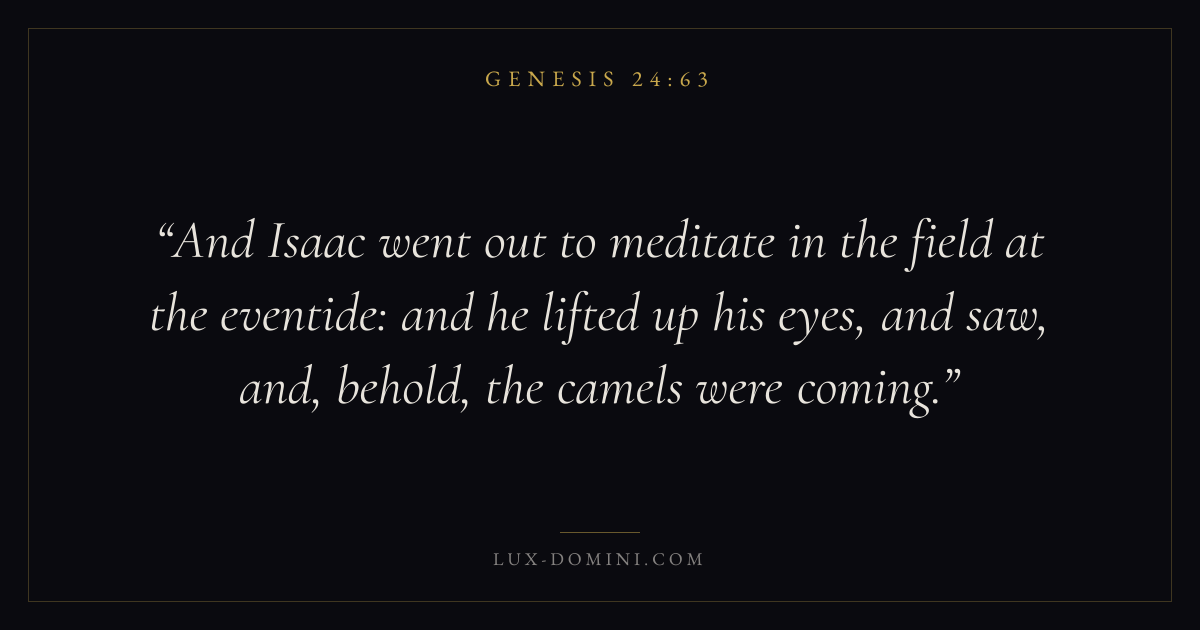 And Isaac went out to meditate in the field at the eventide: and he lifted up his eyes, and saw, and, behold, the camels were coming.