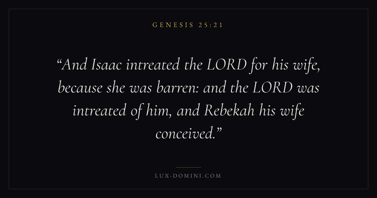 And Isaac intreated the LORD for his wife, because she was barren: and the LORD was intreated of him, and Rebekah his wife conceived.