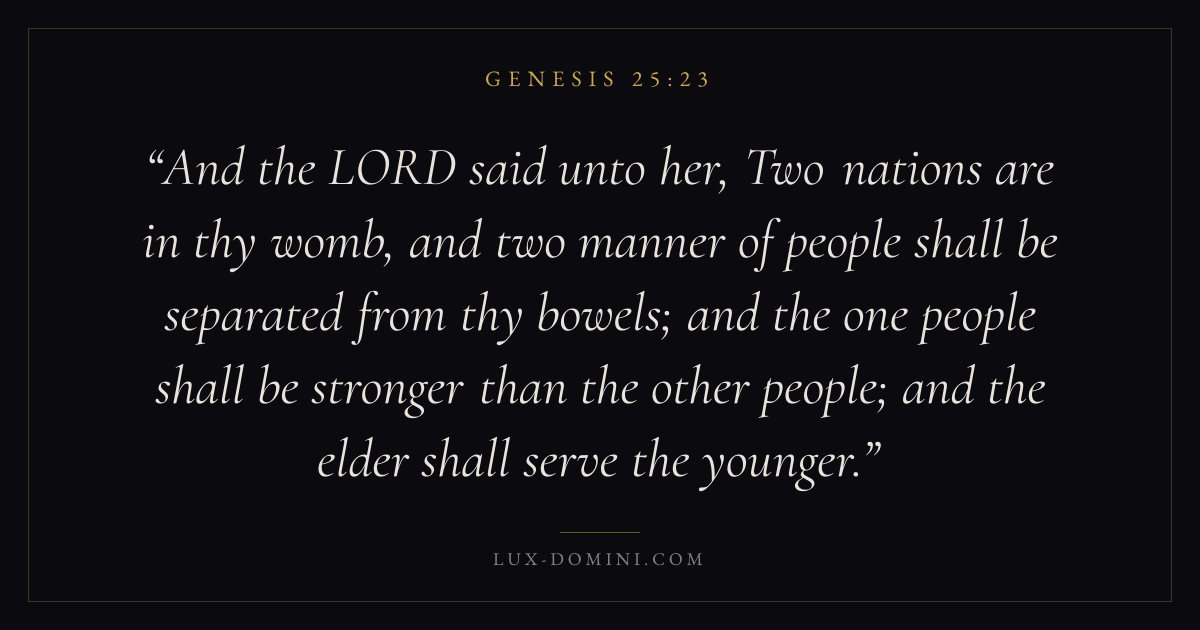 And the LORD said unto her, Two nations are in thy womb, and two manner of people shall be separated from thy bowels; and the one people shall be stronger than the other people; and the elder shall serve the younger.
