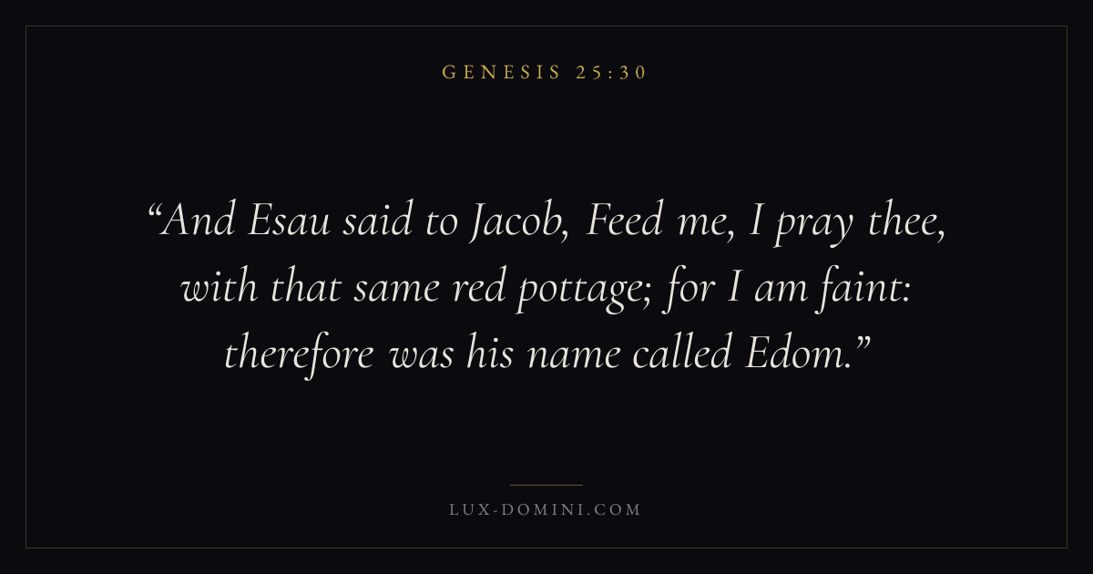 And Esau said to Jacob, Feed me, I pray thee, with that same red pottage; for I am faint: therefore was his name called Edom.