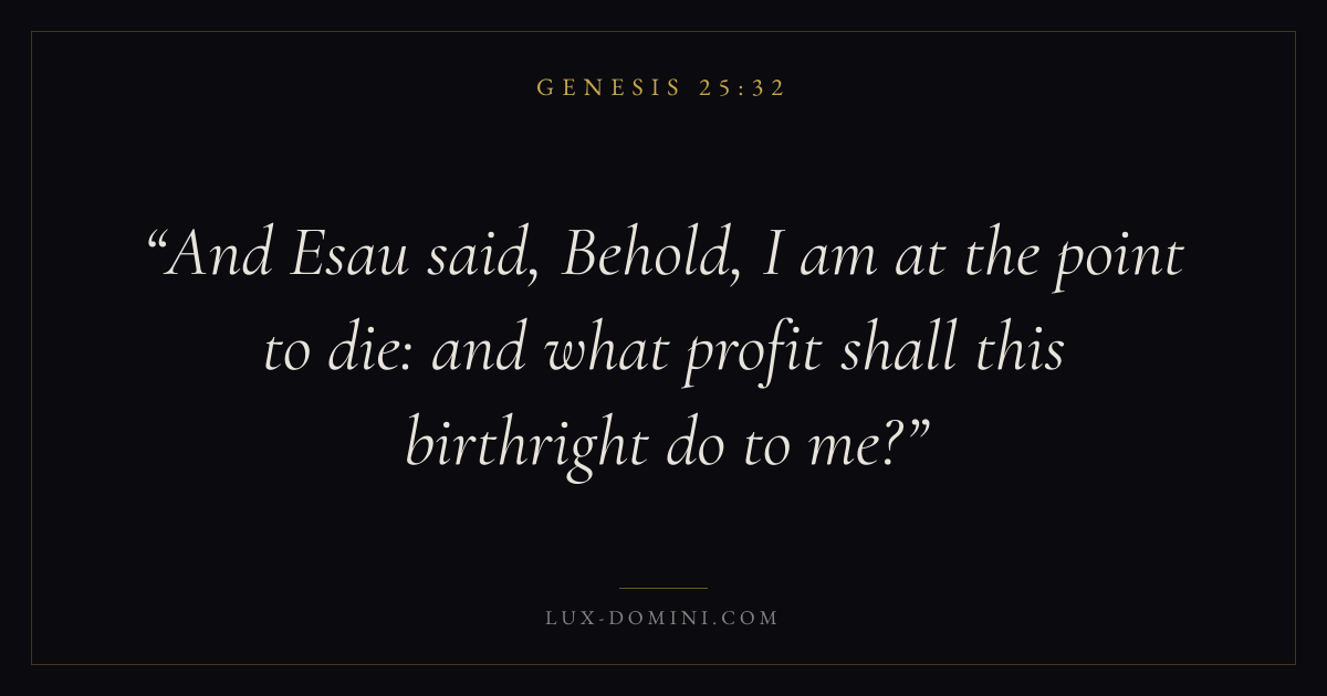 And Esau said, Behold, I am at the point to die: and what profit shall this birthright do to me?