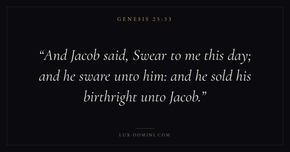 And Jacob said, Swear to me this day; and he sware unto him: and he sold his birthright unto Jacob.