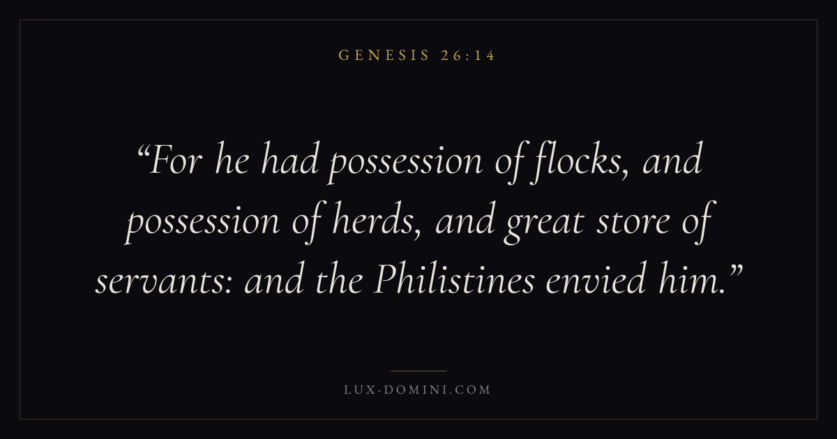 For he had possession of flocks, and possession of herds, and great store of servants: and the Philistines envied him.