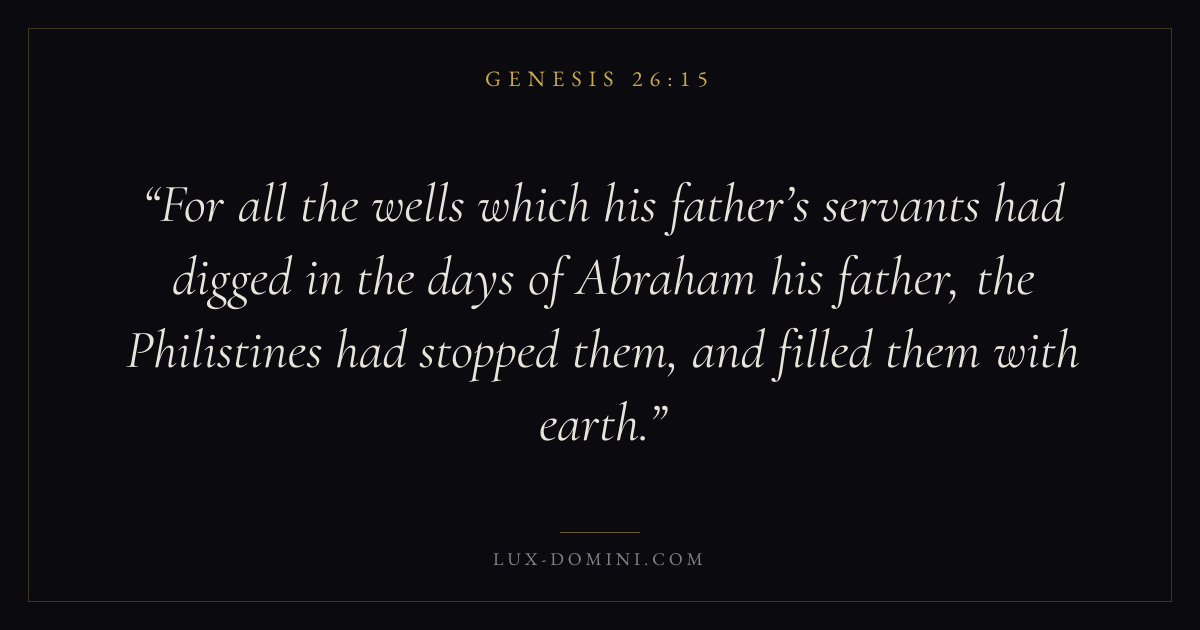 For all the wells which his father’s servants had digged in the days of Abraham his father, the Philistines had stopped them, and filled them with earth.