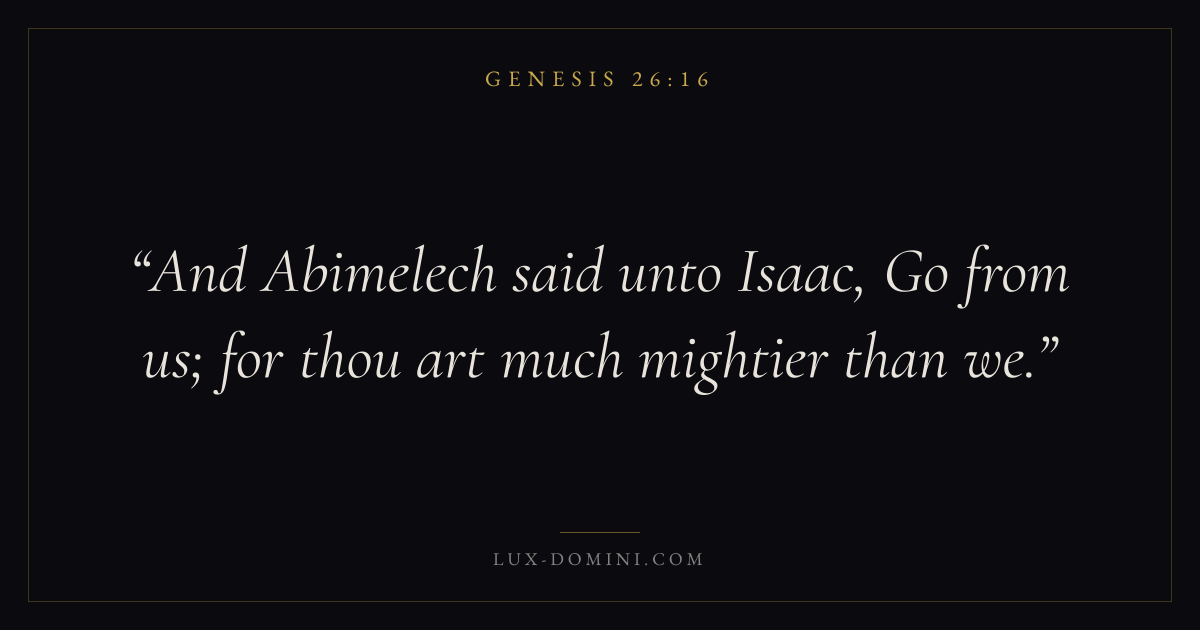 And Abimelech said unto Isaac, Go from us; for thou art much mightier than we.