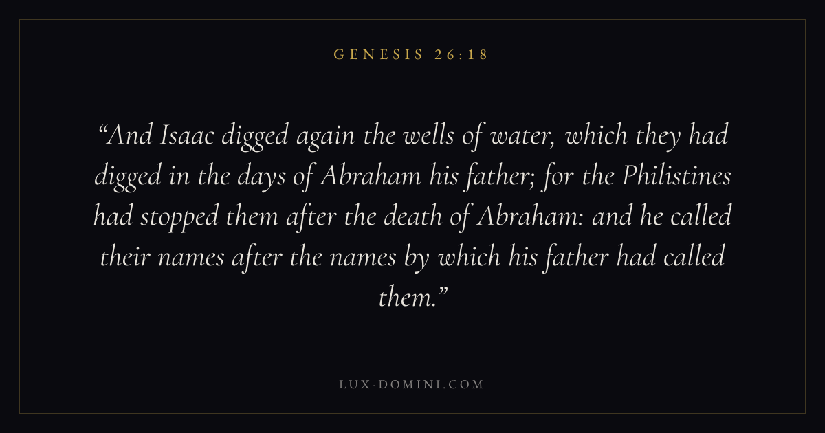 And Isaac digged again the wells of water, which they had digged in the days of Abraham his father; for the Philistines had stopped them after the death of Abraham: and he called their names after the names by which his father had called them.