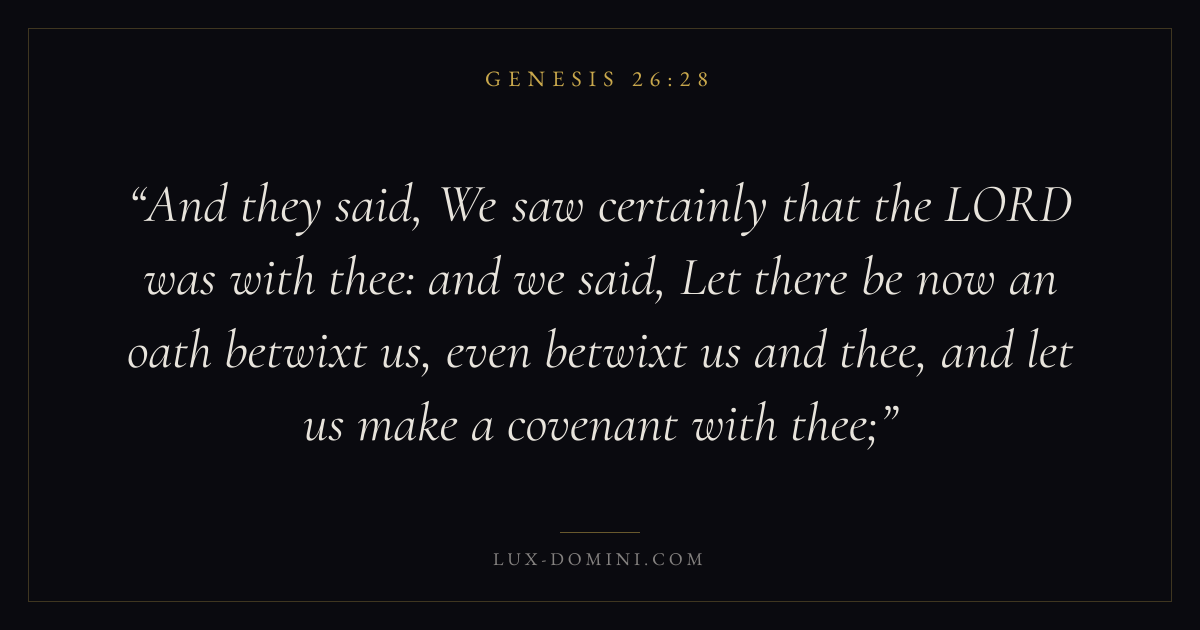 And they said, We saw certainly that the LORD was with thee: and we said, Let there be now an oath betwixt us, even betwixt us and thee, and let us make a covenant with thee;
