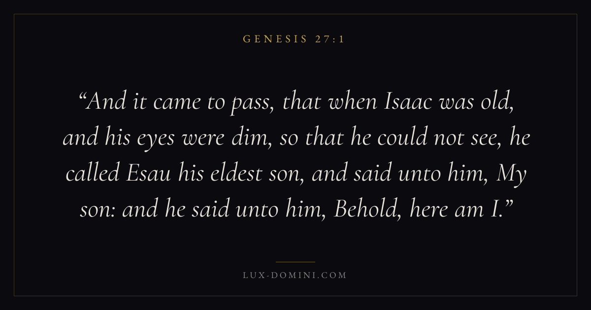 And it came to pass, that when Isaac was old, and his eyes were dim, so that he could not see, he called Esau his eldest son, and said unto him, My son: and he said unto him, Behold, here am I.