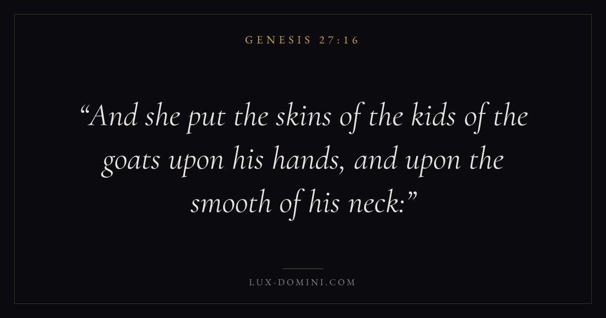 And she put the skins of the kids of the goats upon his hands, and upon the smooth of his neck: