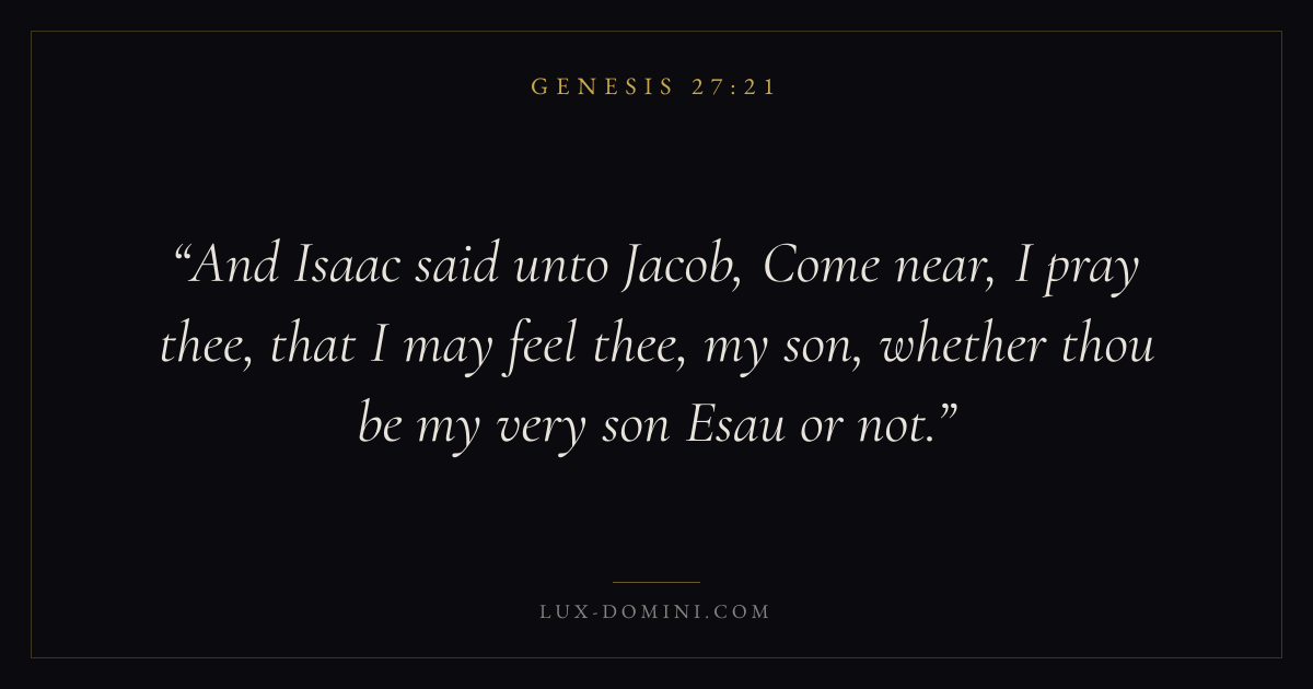 And Isaac said unto Jacob, Come near, I pray thee, that I may feel thee, my son, whether thou be my very son Esau or not.
