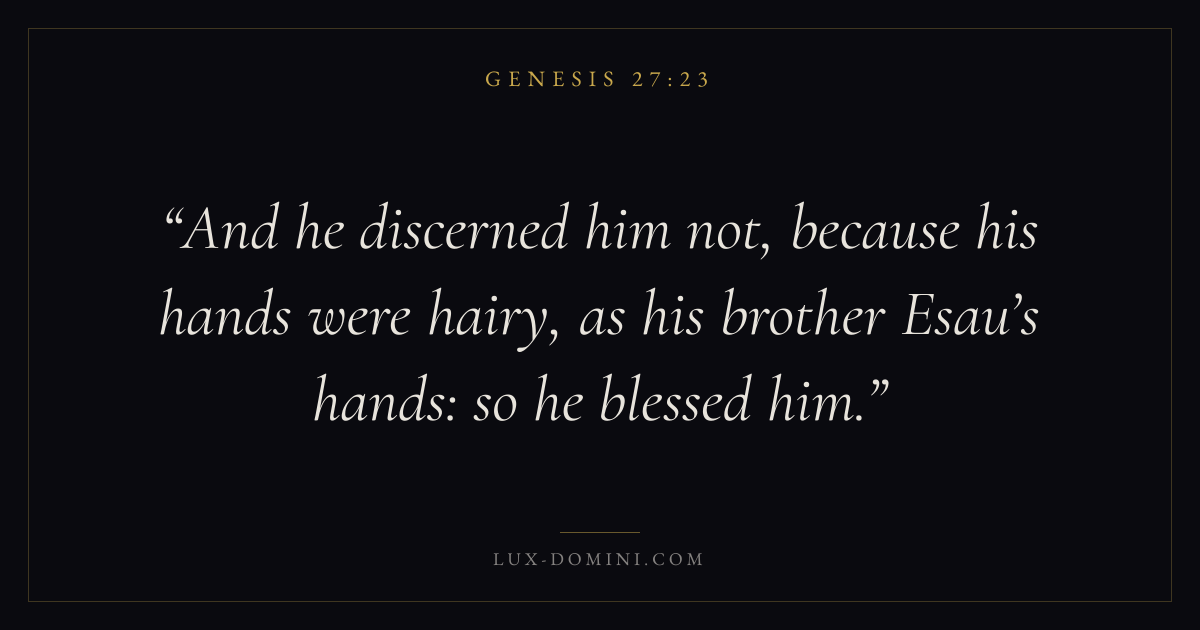 And he discerned him not, because his hands were hairy, as his brother Esau’s hands: so he blessed him.