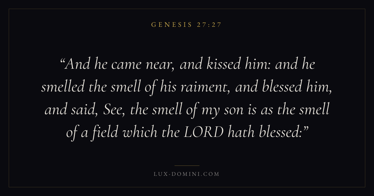 And he came near, and kissed him: and he smelled the smell of his raiment, and blessed him, and said, See, the smell of my son is as the smell of a field which the LORD hath blessed: