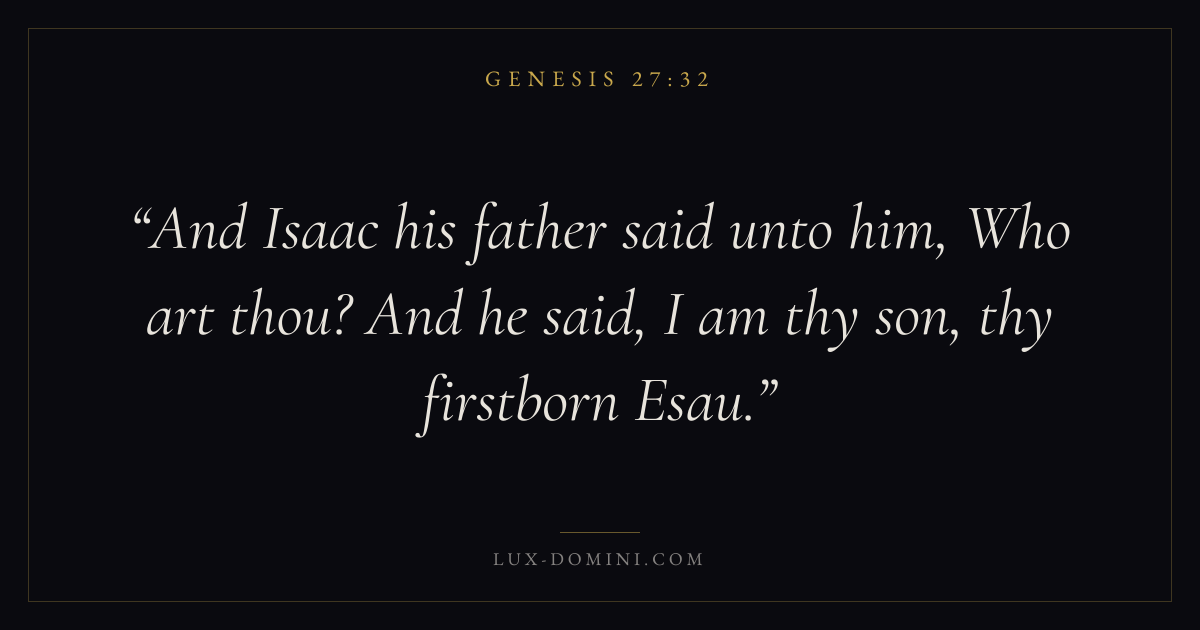 And Isaac his father said unto him, Who art thou? And he said, I am thy son, thy firstborn Esau.