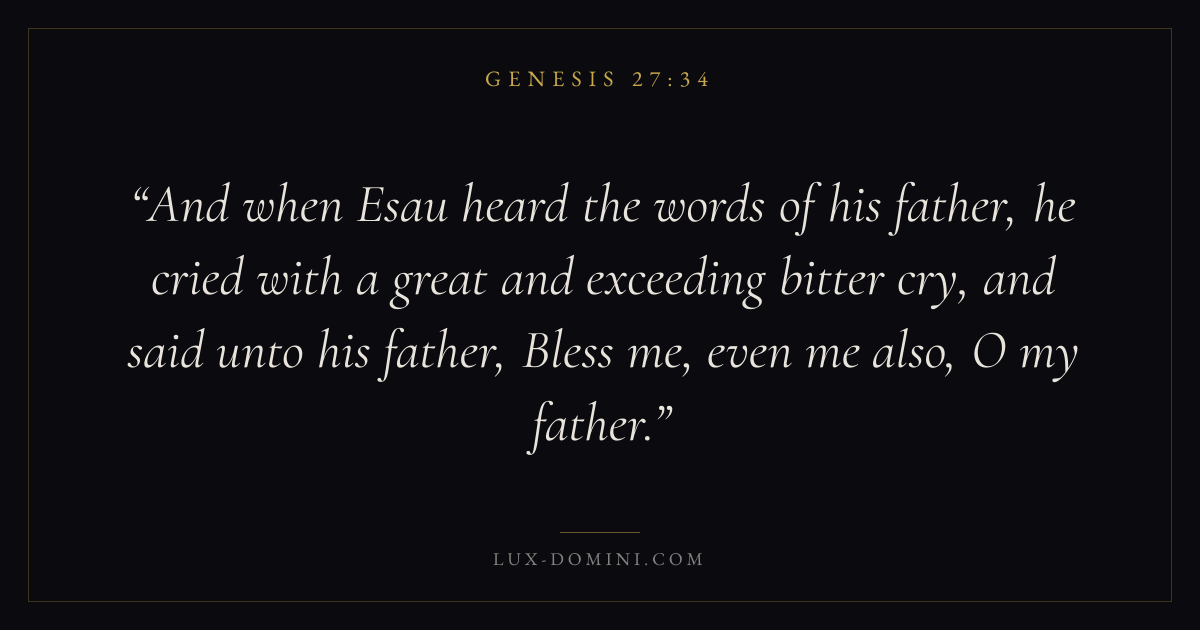 And when Esau heard the words of his father, he cried with a great and exceeding bitter cry, and said unto his father, Bless me, even me also, O my father.