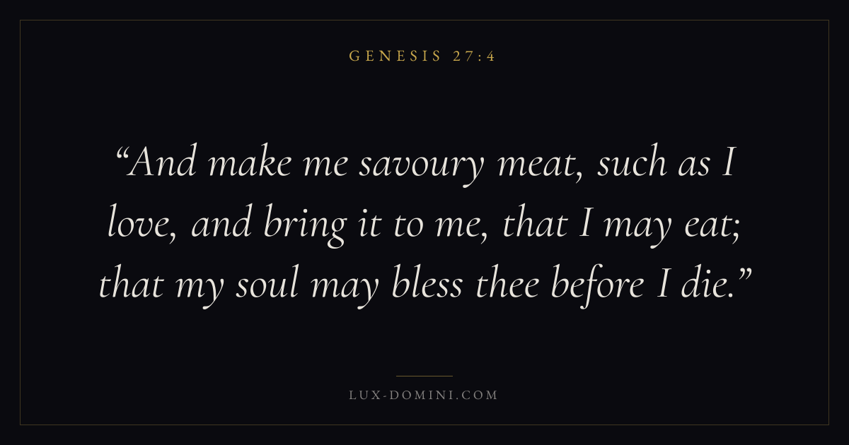 And make me savoury meat, such as I love, and bring it to me, that I may eat; that my soul may bless thee before I die.