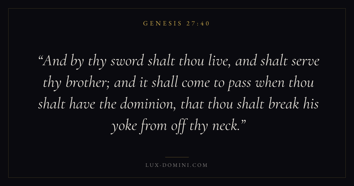 And by thy sword shalt thou live, and shalt serve thy brother; and it shall come to pass when thou shalt have the dominion, that thou shalt break his yoke from off thy neck.