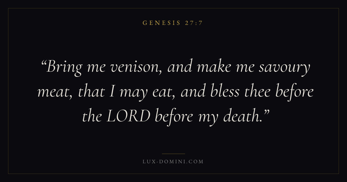 Bring me venison, and make me savoury meat, that I may eat, and bless thee before the LORD before my death.